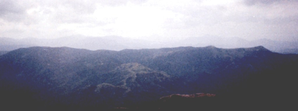Now, just so you don’t think that I am a totally unstable, insane veteran (not something that I would try to deny anyhow), below is an actual distant shot of the real Central Highlands. I took the hazy photo from a helicopter in Vietnam, just before we were inserted into that dangerous terrain. I think that you would agree that it’s not a wild and crazy stretch to see the resemblance.