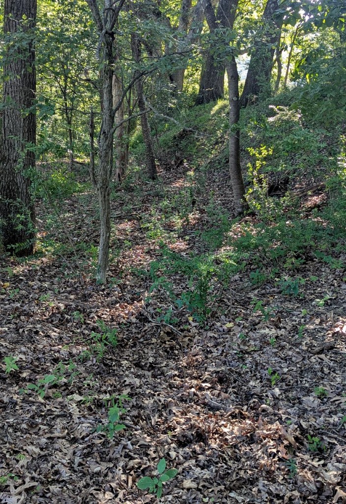 6:38 a.m. and I’m walking on the park trail. It’s a bit foggy, but it seems to be clearing as the sun rises. But then the fog will be replaced by a humidity haze, as you will notice in the pictures below.