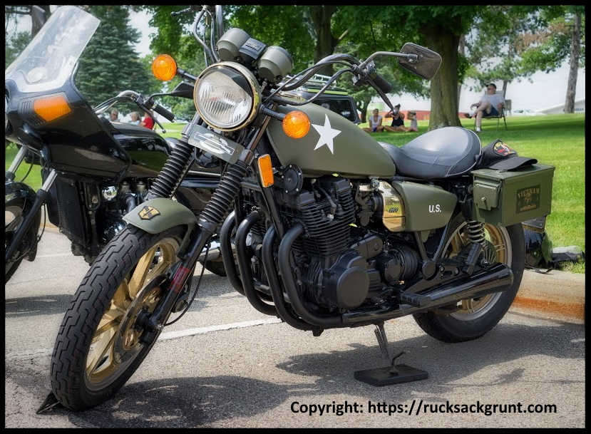 The saddle bags looked OK, but I thought an Army bike should have ammo cans instead.
