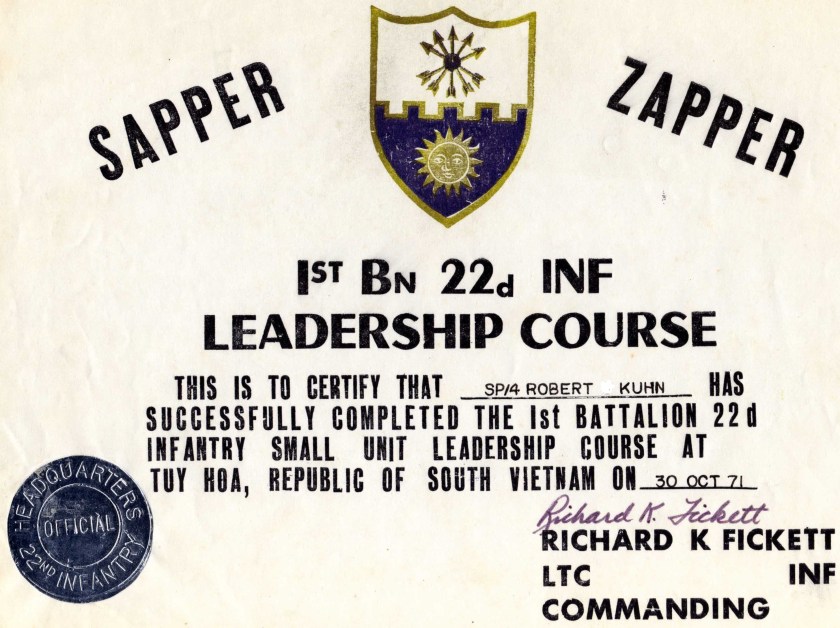 For some reason I was volunteered to take a leadership course. Two guys from each company were chosen. It was a classroom event and this is the certificate I received upon completion. I still have my complete handwritten notebook from the class.