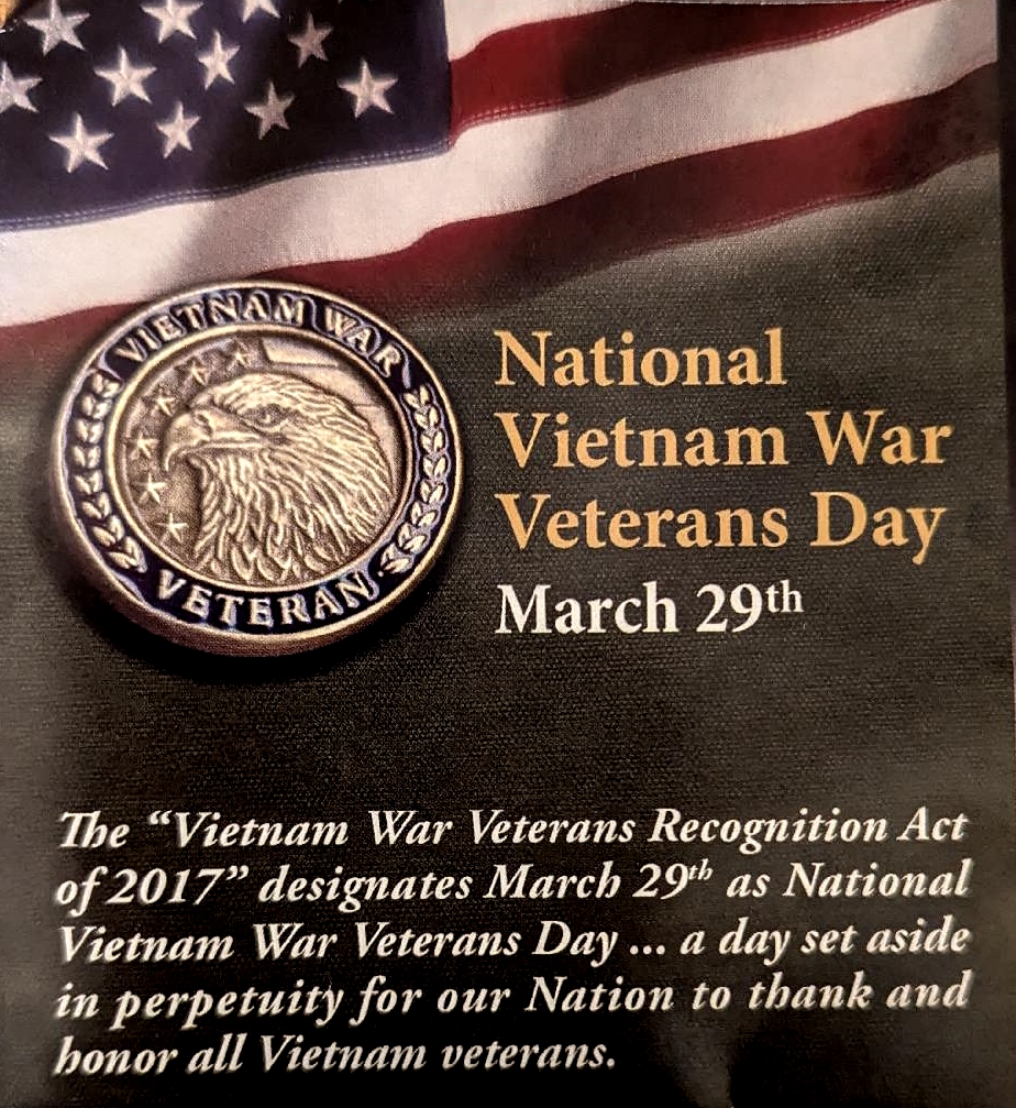 The “Vietnam War Veterans Recognition Act of 2017” designates March 29th as National Vietnam Veterans Day … a day set aside in perpetuity for our Nation to thank and honor all Vietnam veterans.