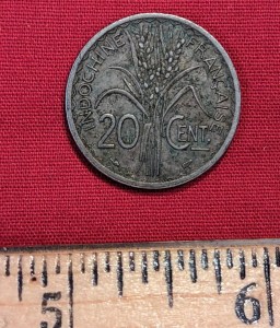 The majority of the coins found were from the pre-American involvement in Vietnam, known as the French Indochina period. It would be interesting to know how and when the coins were obtained and stashed by whom. Friends or foe of the French, the Americans, or both. In our role at the time, we had to assume that they were hidden in enemy caches that had to be confiscated or destroyed.